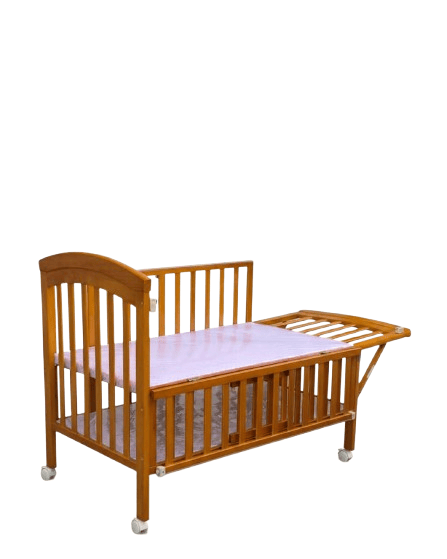 Wooden Baby Cot with Bedside Extension – On Wheels "bd361-3"