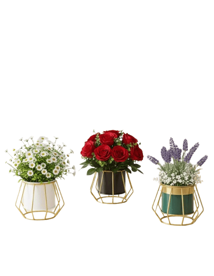 Home Decorative Flowers Pot – Modern Metal & Ceramic Planter"deco46-2"