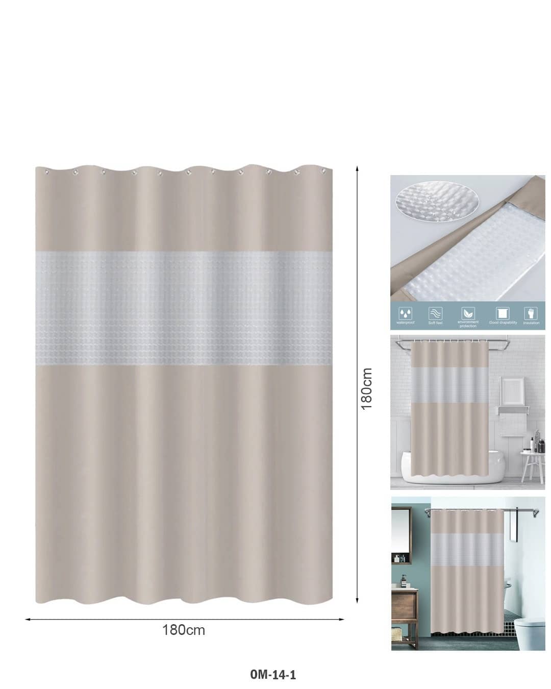 Shower Curtain with See-Through Top – Water-Repellent Privacy Curtain (Model OM-14-1)