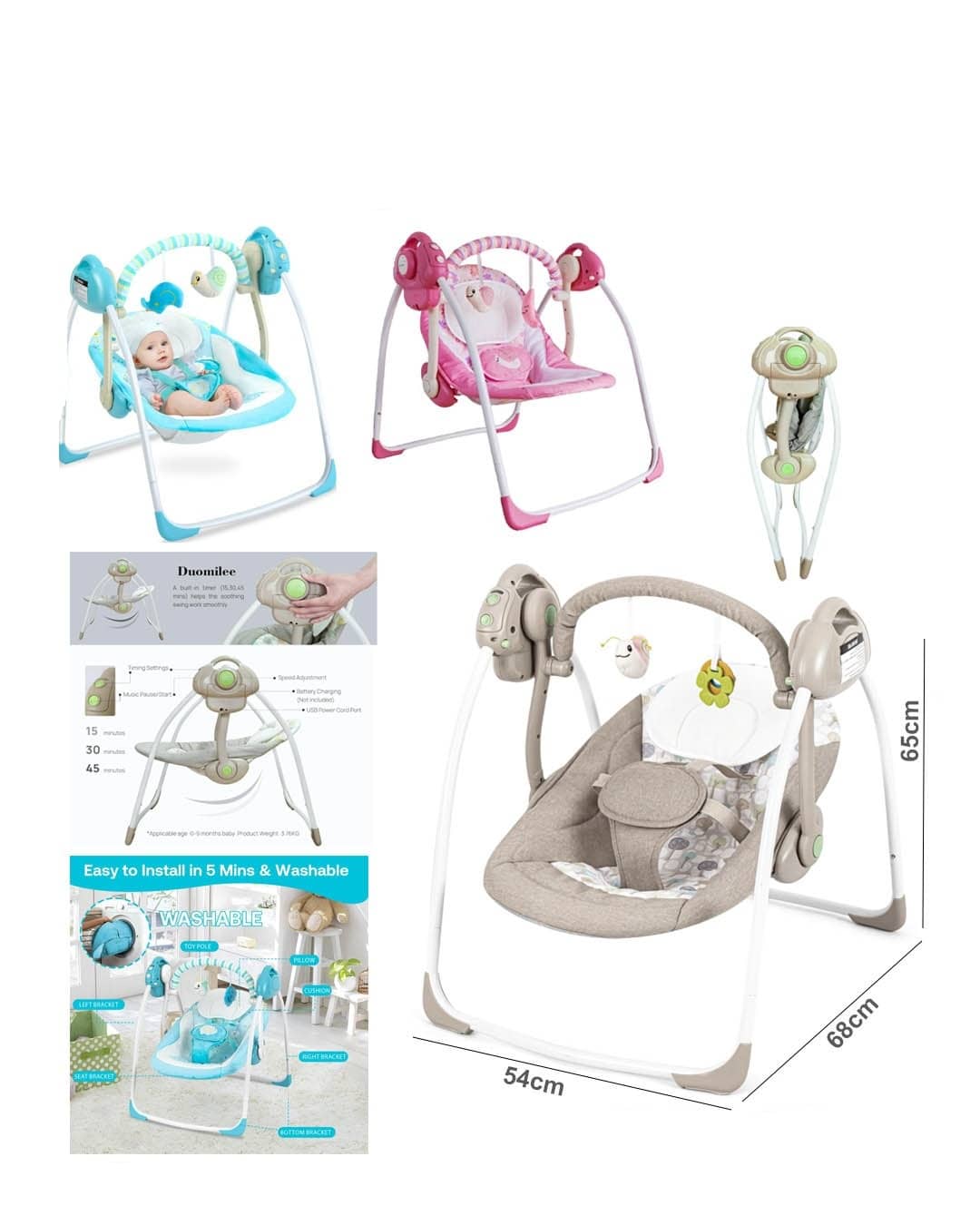 Electric Foldable Baby Swing"rc147-01"