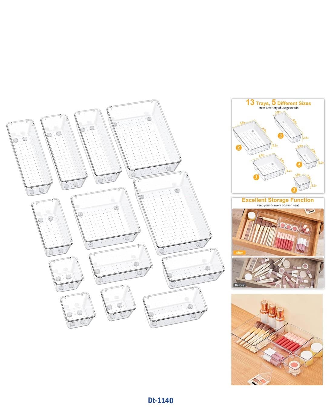 13-Piece Drawer Organizer Set – Transparent Multi-Size Storage Trays (Model DT-1140)